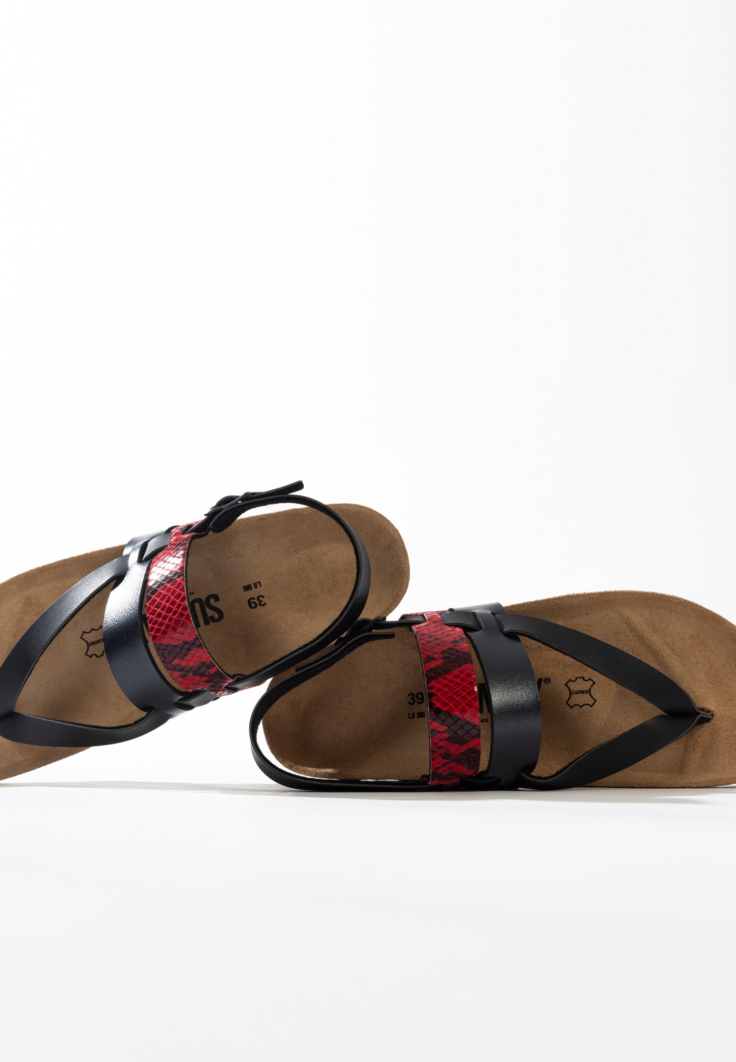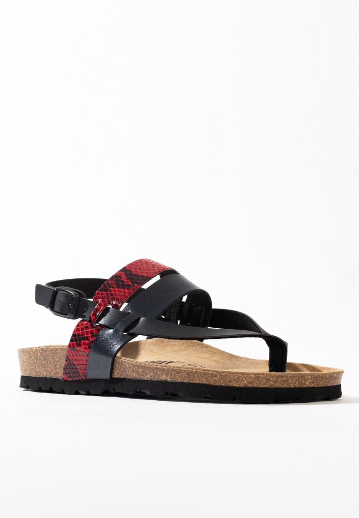 Sandales Gove à entre-doigts Noir et rouge python